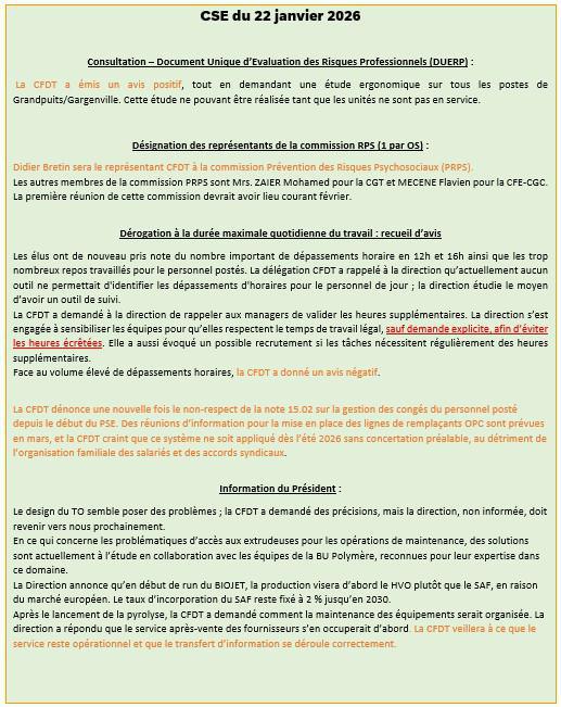 CSE du 22/01/26 - Informations syndicales CFDT